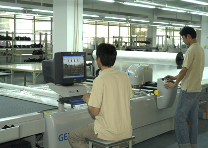 公司采用CAD計算機(jī)輔助排料系統(tǒng)進(jìn)行排料,該系統(tǒng)準(zhǔn)確、高效。鋪料機(jī)代替手工鋪料的優(yōu)點使鋪料均勻、整齊、松緊適宜、降低工人勞動強(qiáng)度。